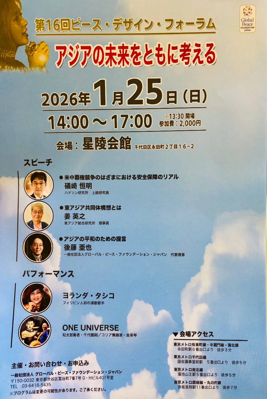 【受付中】1/(日)第16回ピースデザインフオ-ラム @永田町星稜会館